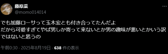 2008年に加藤ローサと玉木宏さんが破局した理由は、加藤ローサさんの浮気説があったことです。