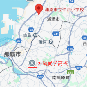 沖縄尚学高校は、仲西小学校・仲西中学校から車で20分/徒歩1時間半ほどの距離です。